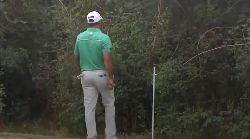 It'll always be a common scene in golf that when pro plays roughly and eventually gets frustrated, he/she does something out of it like throwing the putter. Terry Pilkadaris (at the Panasonic Open India) threw his putter into the woods, and then came looking for it afterwards. It's either he loves that putter or he has no other putter for replacement that's better with the one he threw.